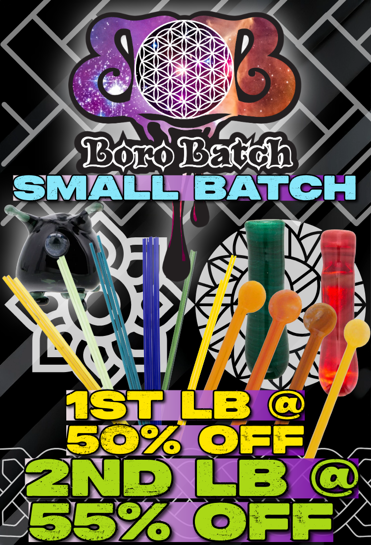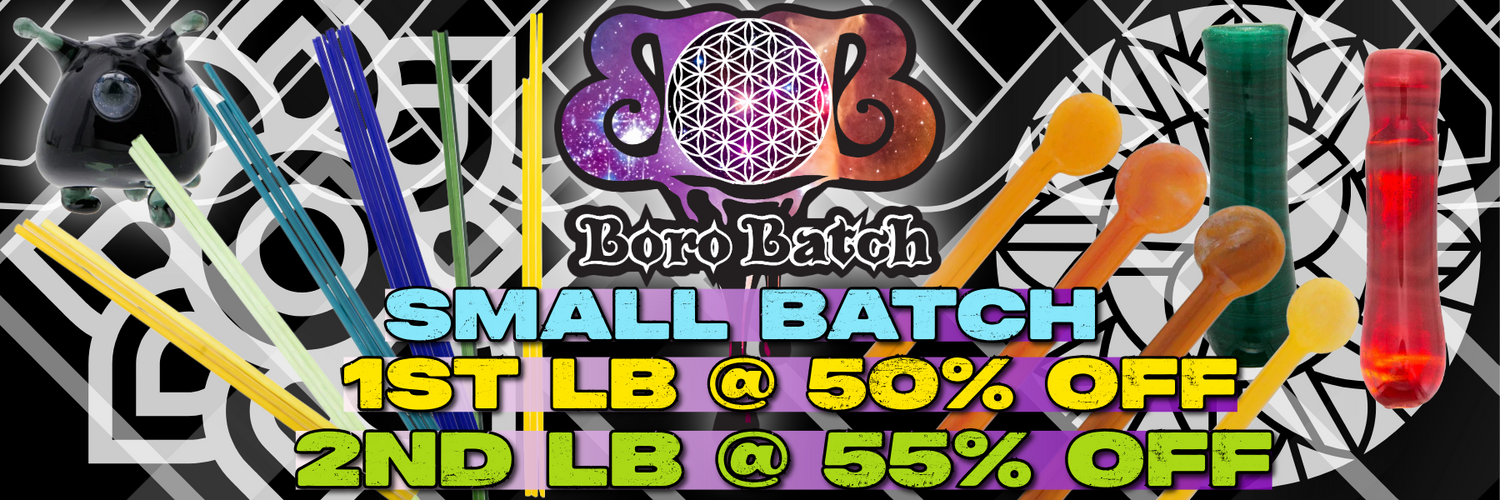 When Boro Batch is experimenting that means you are saving! Boro Batch's Small Batch colors are unique runs of glass that are a part of Boro Batch's color creation process. There are striking, transparents, UV, CFL, opaque colors, and more! We want to get unique colors into your hands at 50% off AND when you buy a pound you get the second pound for 55% off!!! These colors are one of a kind so once they are gone they are gone FOREVER!