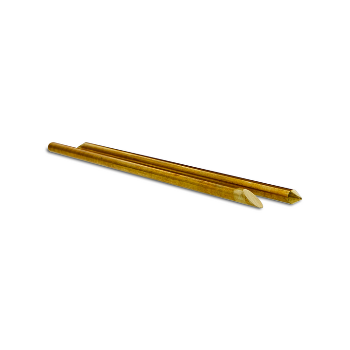 Measuring 7-inches in length, these Brass Bead Shaping Tools are a must have for any glassworker! On one end of the tool there is a sharp, tapered point great for indentations, on the other end there is a sharp, slanted cut-off great for shaping, pushing, and smoothing any piece of hot glass.