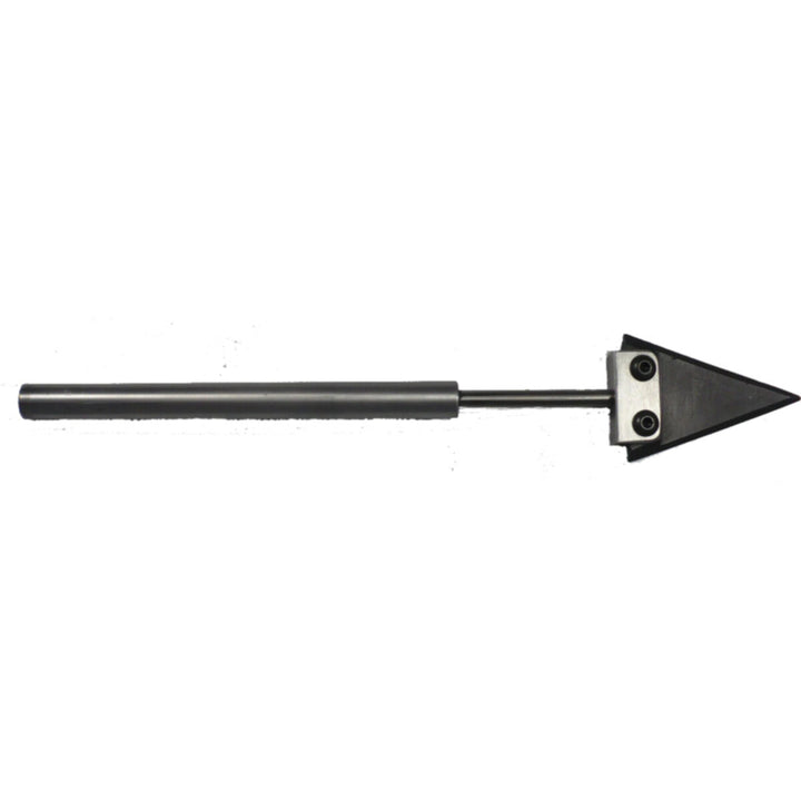 The triangle tool has a sharp edge to produce a crisp sharp carved line but not so pointed that it will chip or wear easily. The connection point of the graphite and metal is a rigid metal block with two screws ad a wider graphite base section for added durability. The tool measures 11" total with a head that measures 2 3/4" long x 1 1/2" wide.