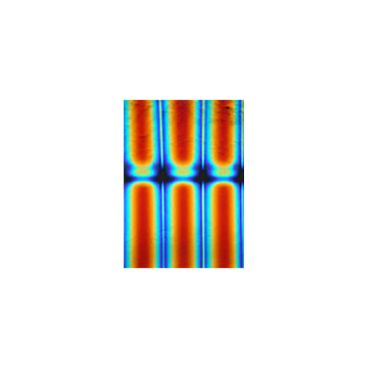 Lots of Rainbows Close Together. Rainbow A is a "gridded" type of Dichroic sheet glass. Striking rainbows are found every 3/4 of an inch. Colors are serene tones of Blues, Greens, Magentas, with subtleties of Yellows and Reds (1/16" thick). Full Dichroic Sheets measure approximately 19" x 16" Diameter in an Oval shape. Check out this Dichroic color in a Full, Half, or Quarter size sheet. ( For more Information about our Dichroic Glass & Services, Check Out ABR's DICHROIC Information Pull-Tab at the Top Right Side of our Homepage)